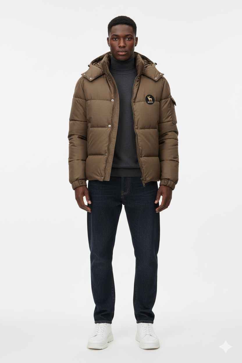 Mens Long puffer jacket Brown